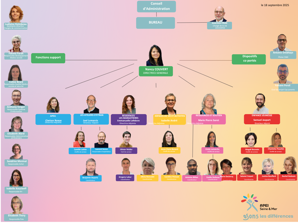 Statuts de l'association Contrat d'Engagement Républicain Règlement intérieur Projet Associatif Conseil d’Administration Organigramme des 5 pôles Direction et fonctions support Rapport d'activités APEI 2024